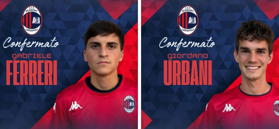 Dopo diversi acquisti l’Academy Ladispoli ha annunciato la riconferma del mediano classe 2004 Gabriele Ferrari e del difensore 2005 Urbani.